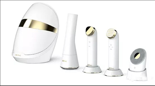 LG Pra的珍珠色裝置,左旋發(fā)光二極管護膚套裝與金色的略微閃亮的鑲嵌件協(xié)調(diào)一致,用于制造該裝置的硅樹脂和金屬也應(yīng)用于醫(yī)療領(lǐng)域。